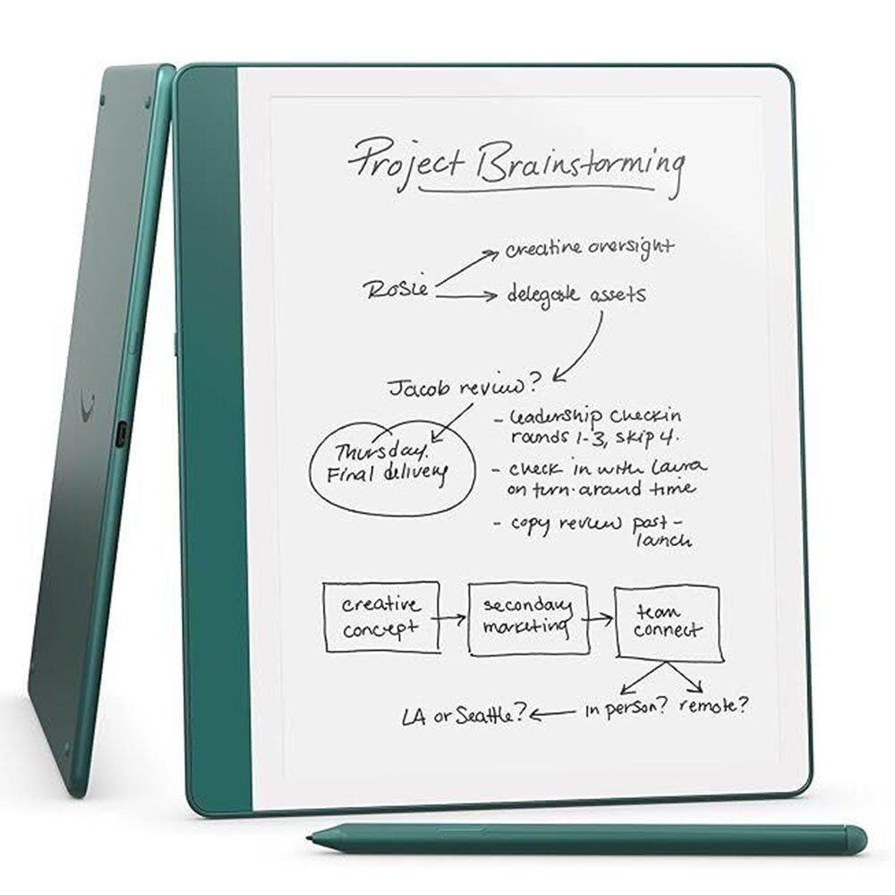 Amazon Kindle Scribe 2024 64 GB Metallic Jade renk, 10.2 inç Paperwhite ekranı ve 300 ppi çözünürlüğüyle hem okuma hem yazma için mükemmel bir deneyim sunuyor. Active Canvas özelliği sayesinde doğrudan kitap sayfalarına not alabilir, el yazınızı metne dönüştürebilir ve belgelerinizi işaretleyebilirsiniz. Yeni AI not defteri araçları ile notlarınızı kolayca özetleyebilir ve düzenleyebilirsiniz. Yeniden tasarlanmış beyaz çerçeveli düz ön ekran ve geliştirilmiş Kindle Scribe premium kalem, kağıt üzerinde yazıyormuş hissi verir. 64 GB depolama alanı, milyonlarca Kindle kitabına erişim ve Wi-Fi bağlantısı ile her an yanınızda. Hem iş hem kişisel kullanım için güçlü bir e-kitap okuyucu ve dijital not defteri.